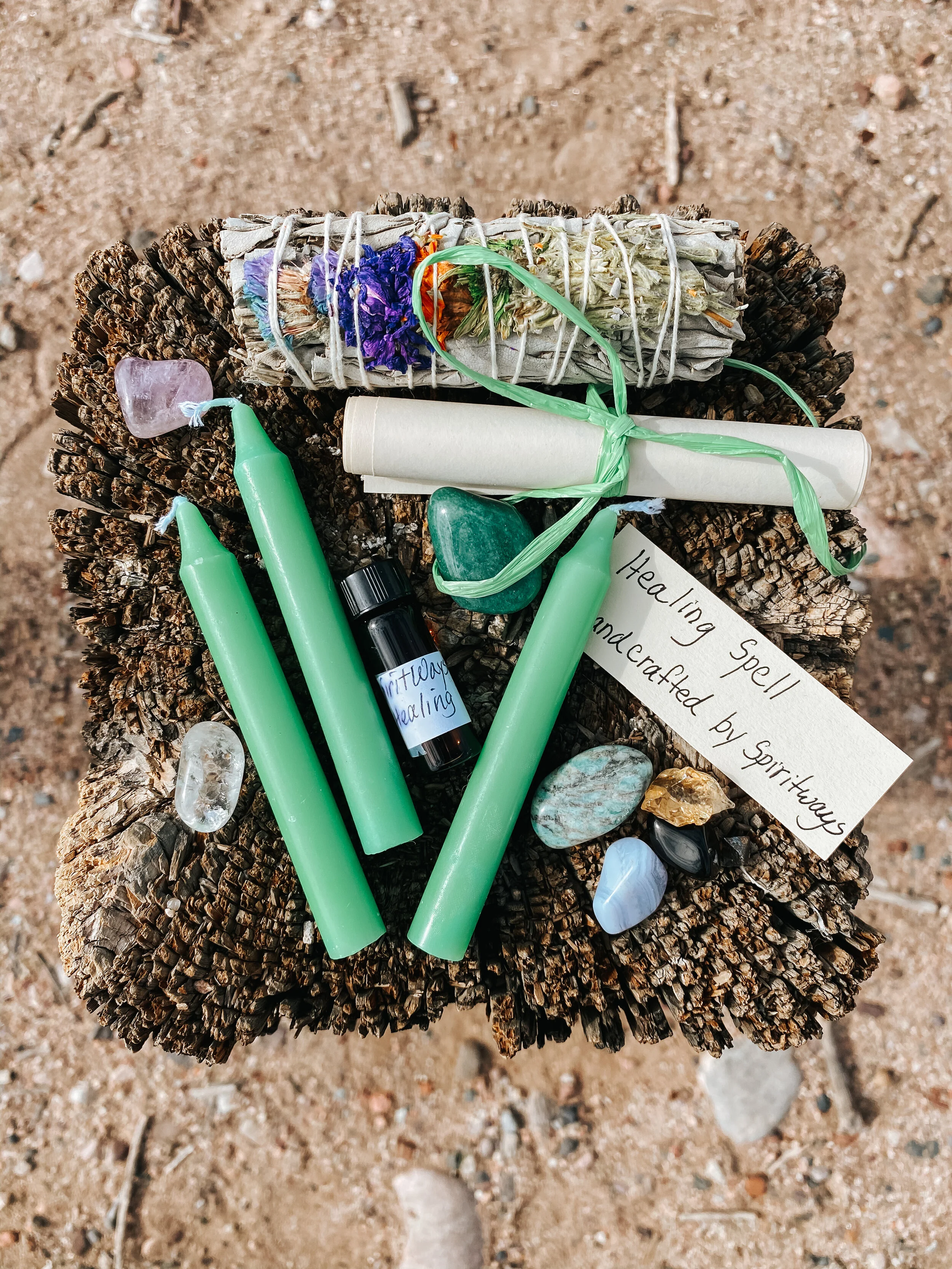 For anyone that knows me, they know I’m still waiting for my acceptance letter to Hogwarts. (I just want to be a wizard already!) And confession: yes, I have totally cast spells in the past. Also confession: they’ve mostly been silly spells I found on the internet in middle school from the era of dial-up AOL, which I think we can all agree should not be trusted. Fast forward to present day me, recently in a metaphysical shop, where I came upon a basket of energy spells ranging from love to money to dreams. But, the “healing spell” felt the most monumental to me.